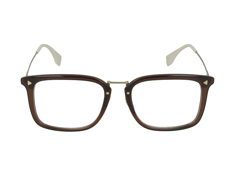 משקפי ראייה בעלי מסגרת מרובעת חומה שקופה.
