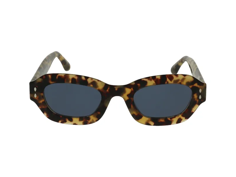 משקפי שמש מבית איזבל מרנט בעלי מסגרת מלבנית מנומרת ועדשות אפורות כחולות כהות.