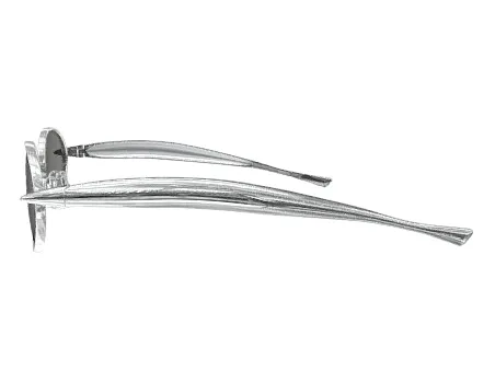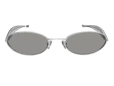 משקפי שמש מבית בוטגה ונטה בעלי מסגרת אובלית בצבע כסף ועדשות אפורות.