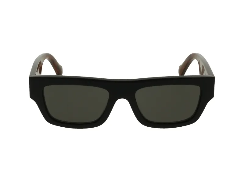 משקפי שמש מבית גוצ'י בעלי מסגרת מלבנית שחורה ועדשות אפורות כהות.