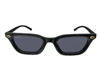 משקפי שמש מבית גוצ'י בעלי מסגרת חתולית שחורה ועדשות אפורות.