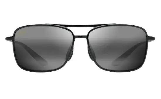 משקפי שמש מבית מאווי ג'ים בעלי מסגרת שחורה בסגנון טייסים עם גשר כפול ועדשות פולארויד אפורות.