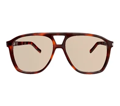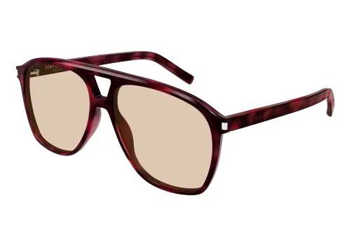 משקפי שמש מבית סאן לורן בעלי מסגרת אוברסייז מנומרת כהה בסגנון טייסים עם עדשות חומות.