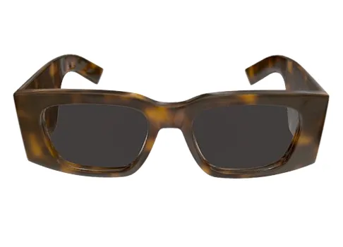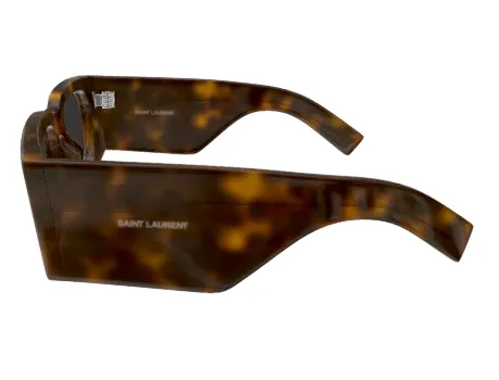 משקפי שמש מבית סאן לורן בעלי מסגרת מלבנית מנומרת ועדשות אפורות כהות.