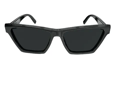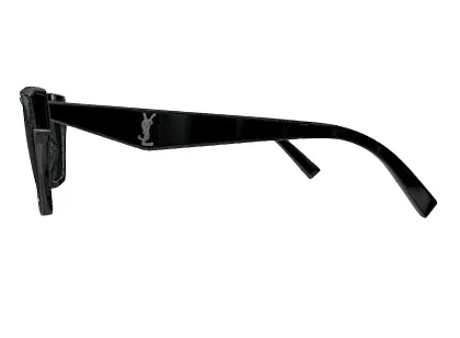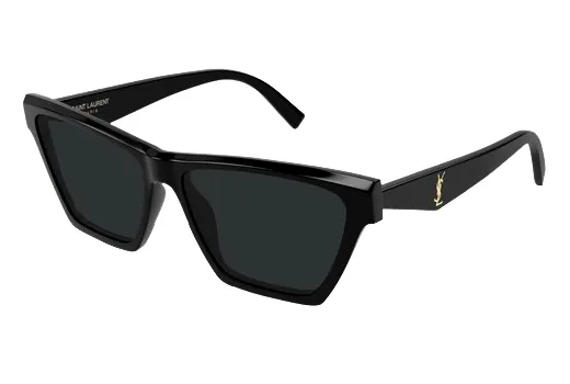 משקפי שמש מבית סאן לורן בעלי מסגרת חתולית שחורה ועדשות אפורות כהות.
