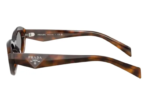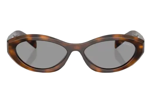 משקפי שמש מבית פראדה בעלי מסגרת אובלית מנומרת ועדשות אפורות.